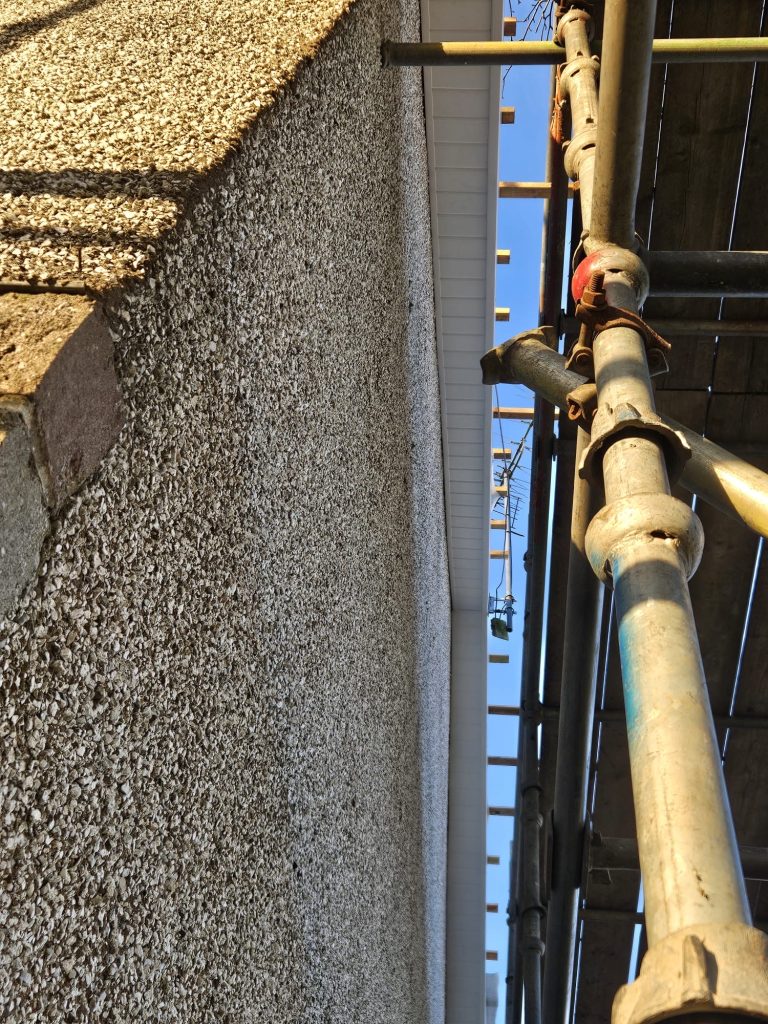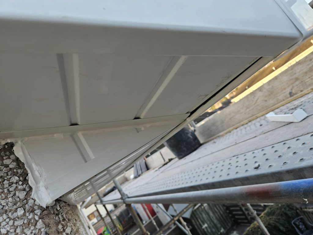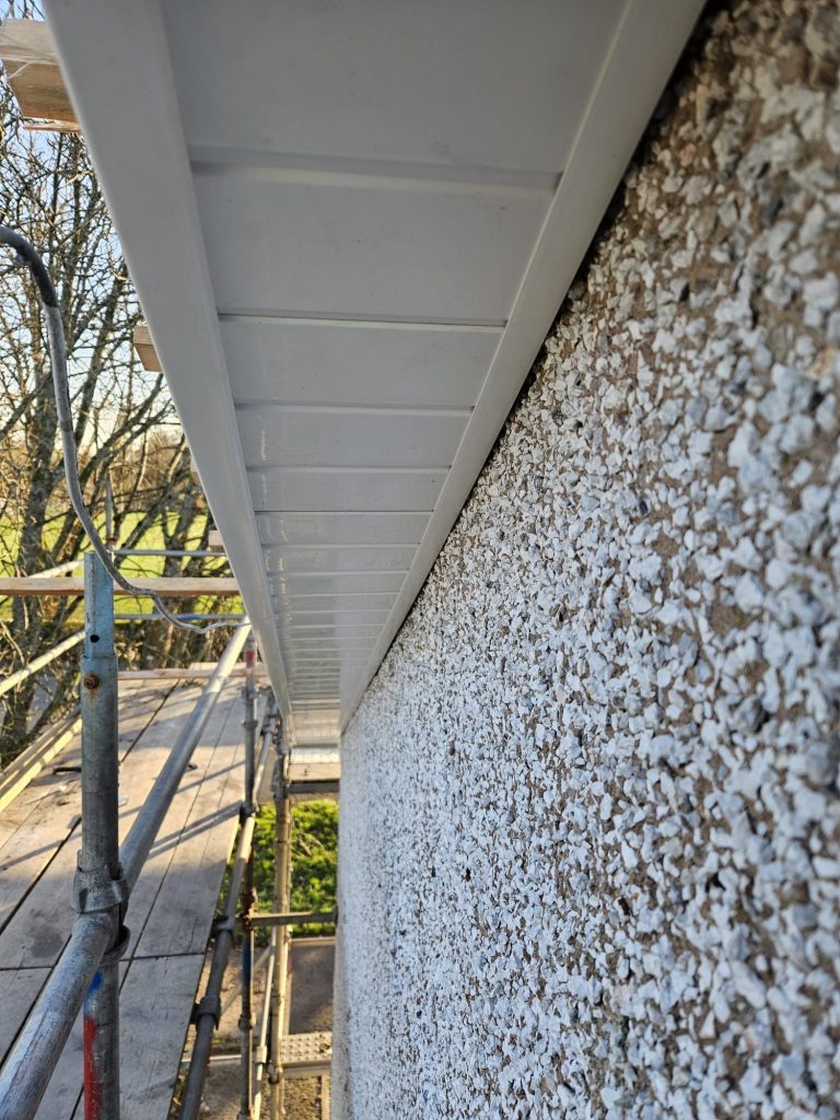 Before and after photos of a roofline job. Asbestos soffits were stripped and replaced with new WHITE UPVC to give this property a fresh new look.