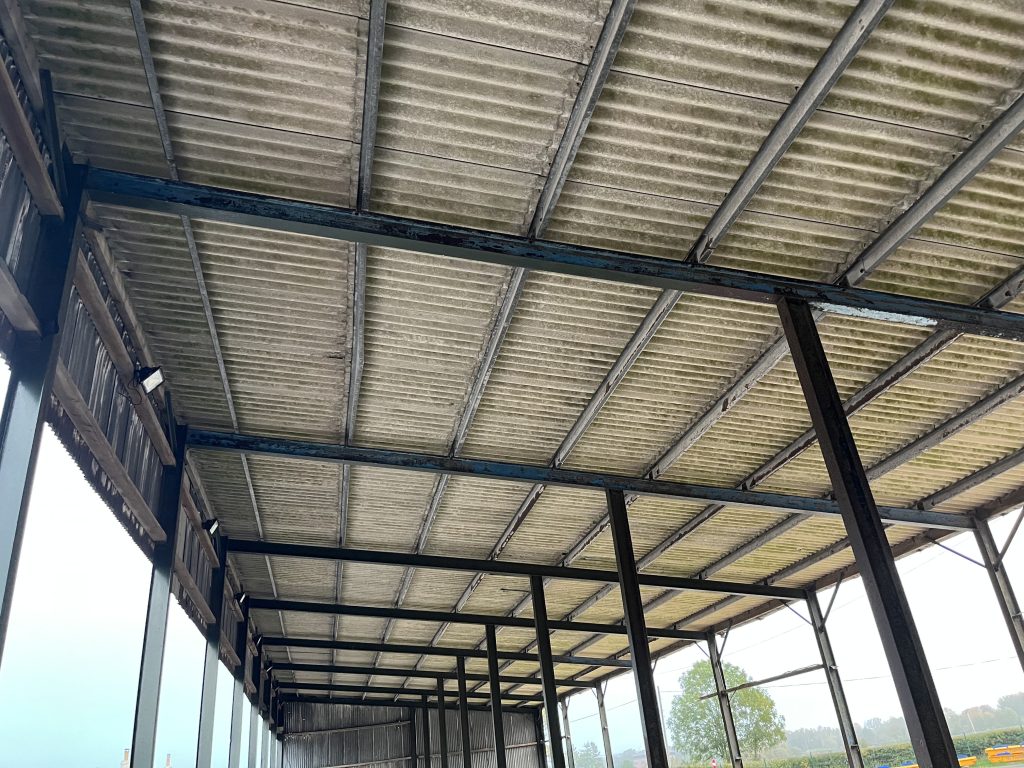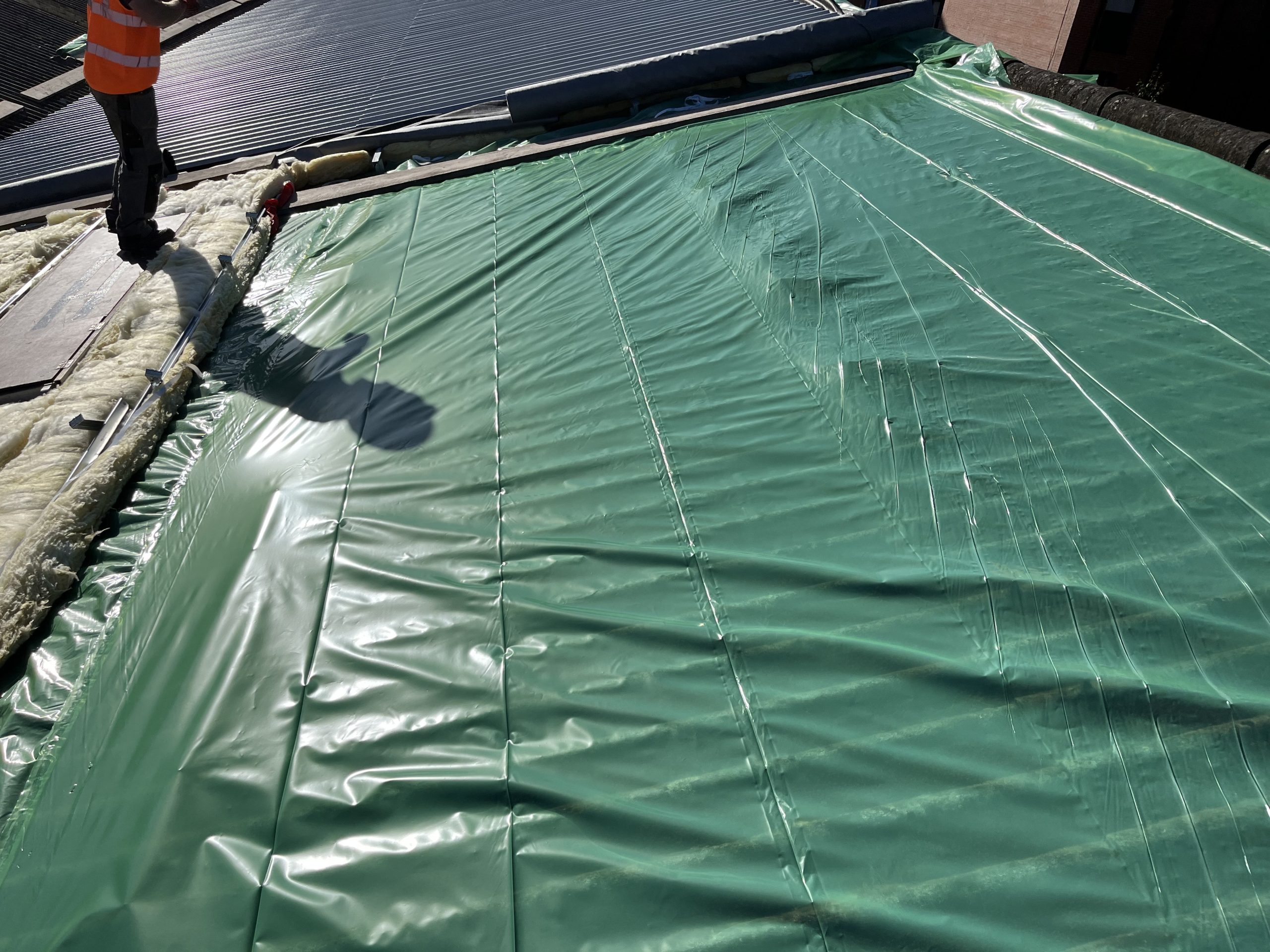 This was an asbestos overclad spec provided by a local authority consisting of vapour barrier, ash grid rail system, 150mm insulation, breathable membrane then box profile roof sheets to finish. The team worked tirelessly to complete this to spec and had a visit from the local authority. H&S who were happy with the way the works were being carried out.